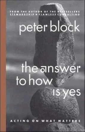 1. The Answer to How is Yes- Acting on What Matters by Peter Block. People keep asking “”How?”” as a defence against living their life, says best-selling author Peter Block. In this witty, insightful award-winning book, Block shows that many standard solutions and improvement efforts, reinforced by most of the literature, keep people paralyzed. Here he places the “”how to”” craze in perspective and teaches individuals, workers, and managers ways to act on what they know. This in turn allows them to reclaim their freedom and capacity to create the kind of world they want to live in. Block’s “”elements of choice”” – the characteristic of a new workplace and a new world based on more positive values – include self-mentoring, investing in relationships, accepting the unpredictability of life, and realizing that the individual prospers only when the community does